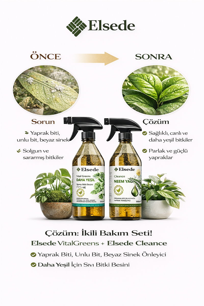 Elsede Cleance – Neem Yağı İçeren Yaprak Biti, Unlu Bit, Beyaz Sinek Önleyici & Yaprak Temizleyici (500 ml Sprey)